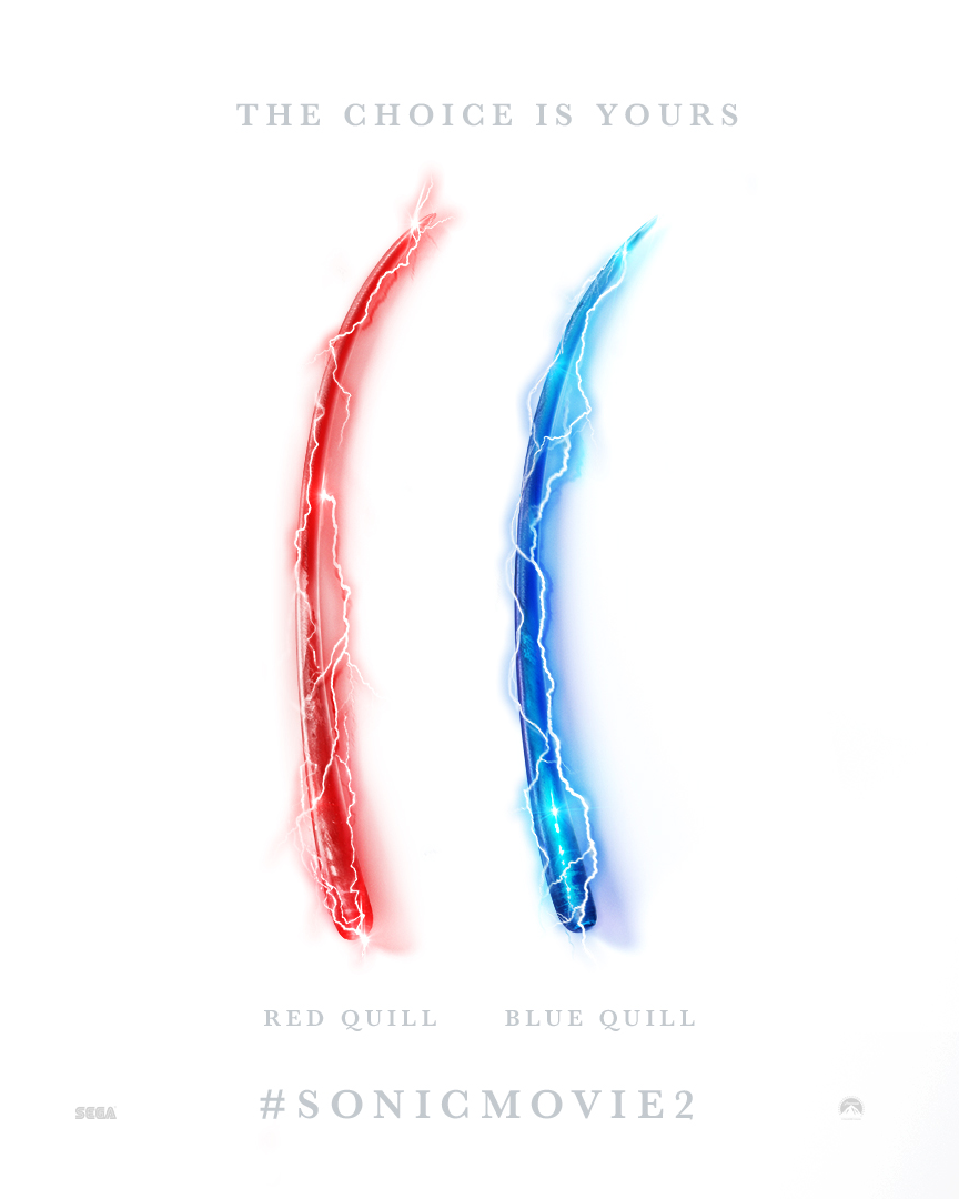 - Un poster inglese del film chiamato The choice is yours mostra un aculeo di Sonic e uno di Knuckles, che hanno gli stessi colori delle pillole della serie di fantascienza e thriller Matrix.[25]